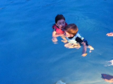 Sara and Brooks swim with their vests all by themselves these days, which makes pool time a lot more fun--and more doable for me when I'm by myself with the kids.